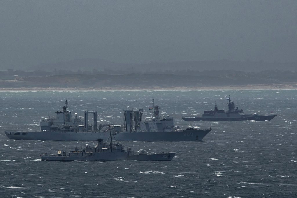 CAPE TOWN, SOUTH AFRICA JANUARY 15: An Iranian corvette IRIS Naghdi is spotted sailing in False Bay on January 15, 2026 in Cape Town, South Africa. It is reported that an urgent investigation has been launched after President Cyril Ramaphosa's clear instruction to ask Iran to withdraw from the Exercise Will For Peace was allegedly ignored. (Photo by Jaco Marais/Die Burger/Gallo Images via Getty Images)