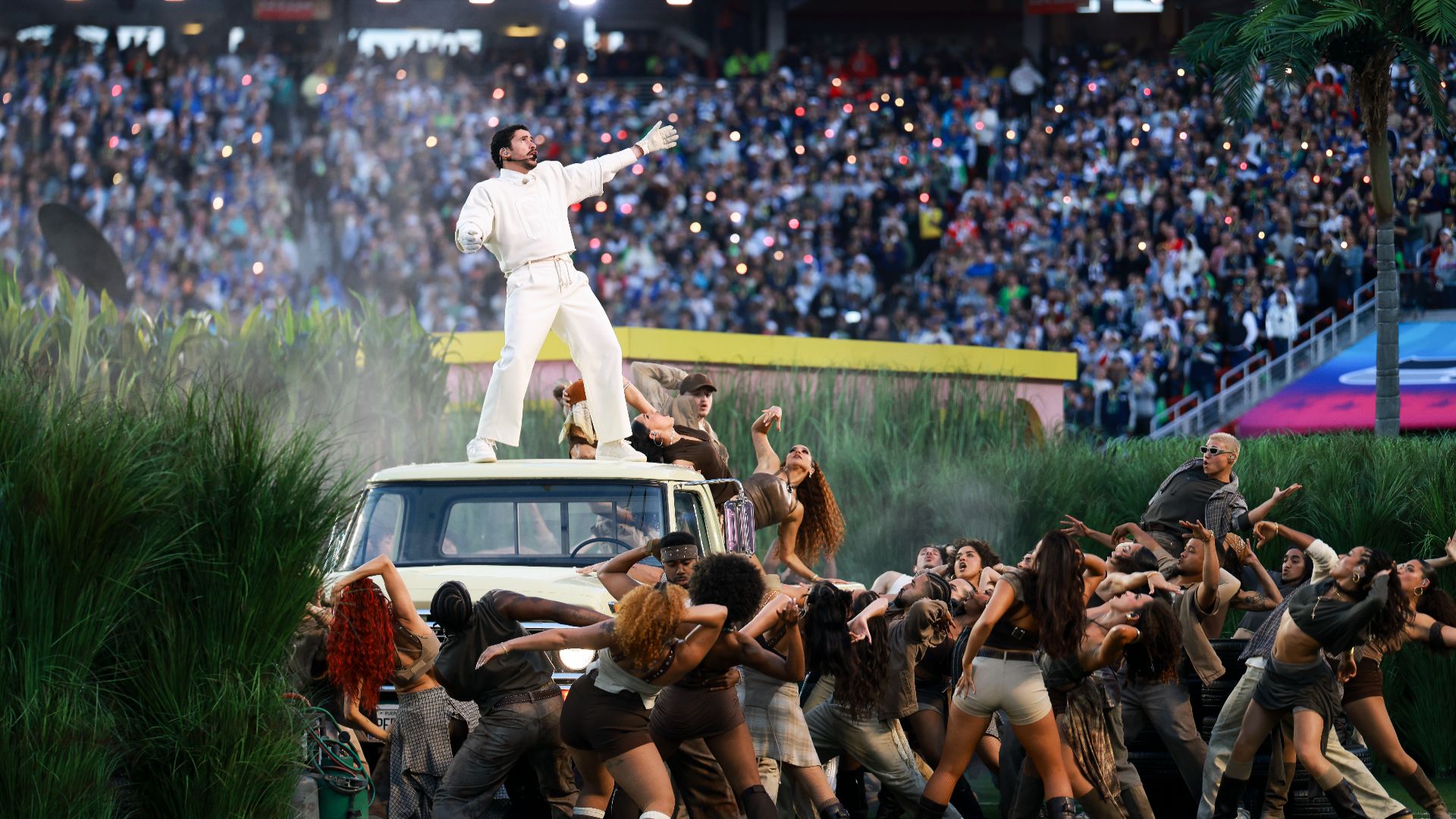The controversy surrounding the halftime show did not prevent it from breaking records. Bad Bunny's Super Bowl LX halftime performance on February 8, 2026, became the most-watched halftime show in history, drawing an estimated 135.4 million viewers. The number surpassed the previous record held by Kendrick Lamar in 2025, which reached 133.5 million viewers, as well as Michael Jackson's 1993 performance, estimated at 133.4 million. The record-breaking audience highlighted the scale of public interest in Bad Bunny's appearance, even as political criticism intensified. The viewership milestone also reinforced Bad Bunny's global reach, as the artist remains one of the most-streamed performers in the world.
