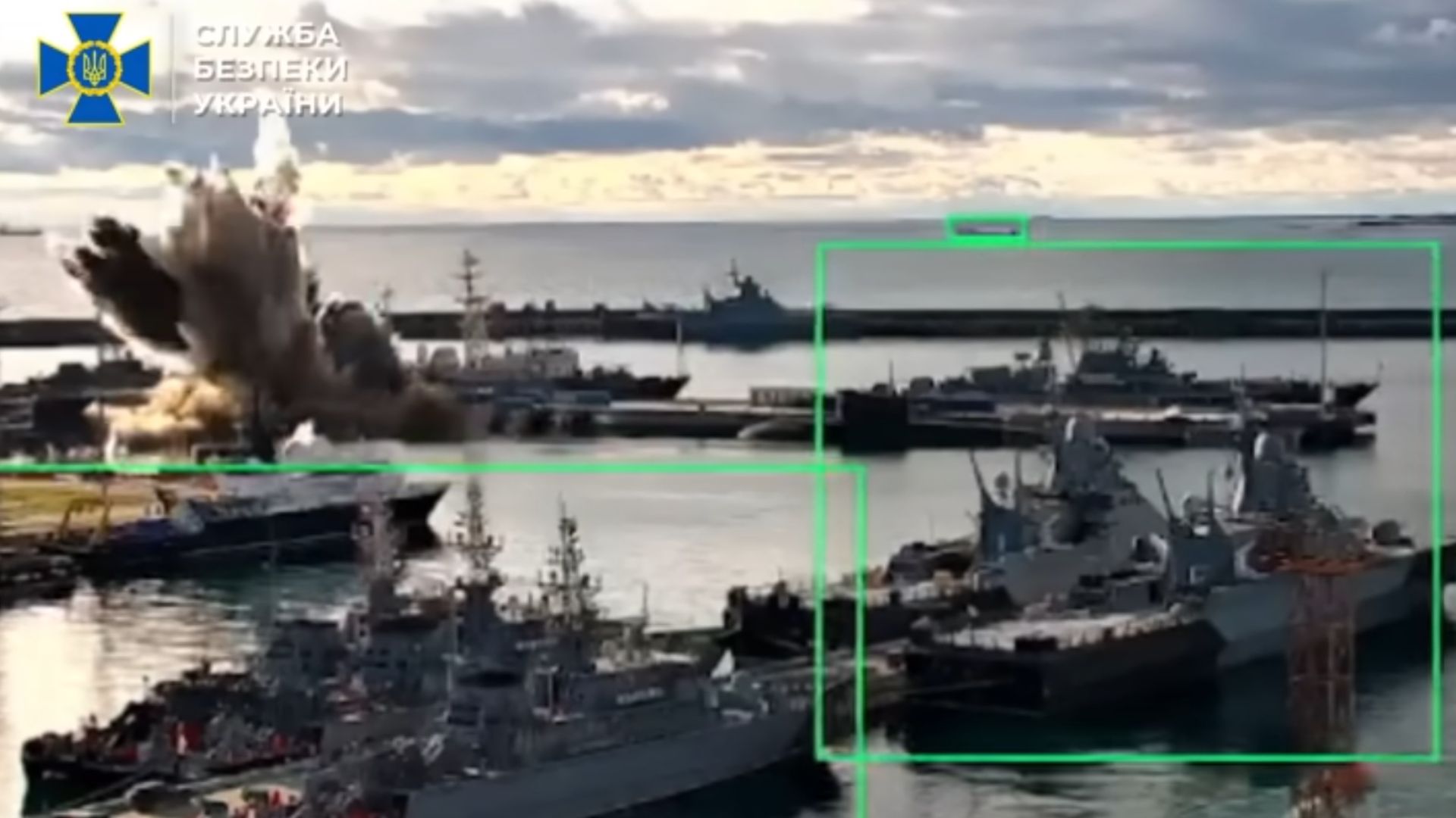 Ukraine said it deployed underwater drones to strike a Russian submarine as it sat at the Black Sea port of Novorossiysk, releasing footage that showed a large blast flaring up near a dock and sending smoke across the waterfront. The claim came from the SBU, which said the explosion left the submarine badly damaged and no longer operational, writing: «As a result of the explosion, the submarine suffered critical damage and was effectively put out of action». Reuters said it independently verified the video showing an explosion near the docked submarine, while Russia's Black Sea Fleet denied any damage and said vessels at the base remained in working order.